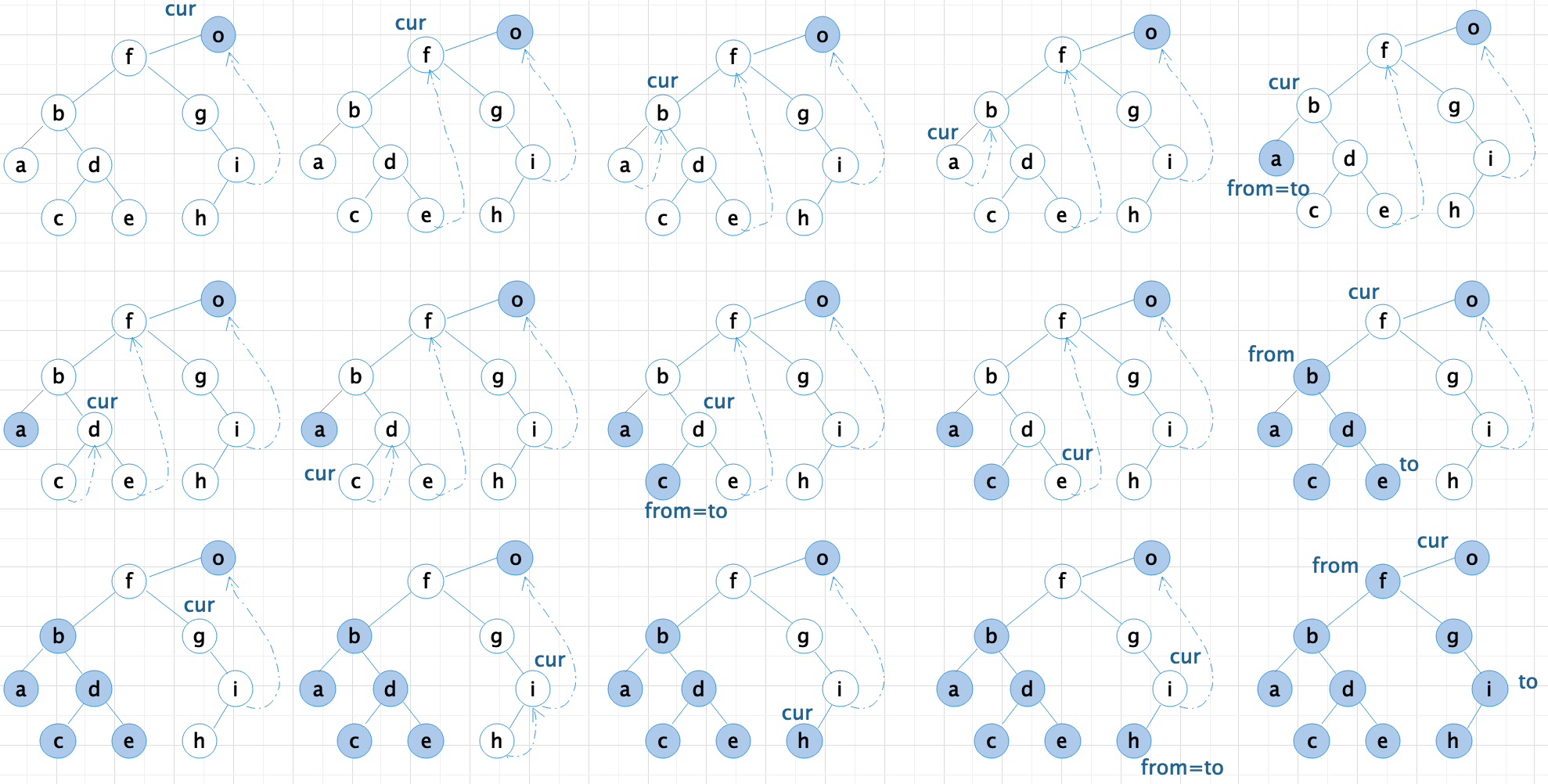 并且还需要一个子过程,就是倒序输出 cur 左孩子到 cur 的前驱节点之间路径上所有节点。
